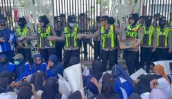 Sentuhan Humanis di Tengah Aksi: Polwan Bojonegoro Bagikan Air Mineral, Dinginkan Suasana Unjuk Rasa Damai
