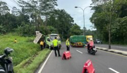 Rem Diduga Blong! Truk Hino Nyemplung Parit di Jalan Lingkar Selatan Salatiga