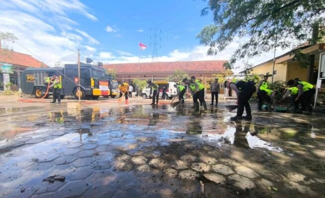 Pasca Banjir, Polres Kudus Bergerak Cepat: Bersihkan Sekolah hingga Layanan Trauma Healing