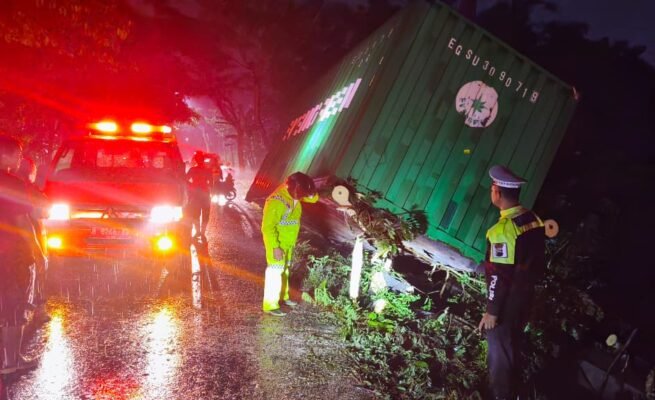Kecelakaan Terjadi di JLS Salatiga, Sebuah Truk Senggol Pohon Hingga Kontainer Terlepas, Ini Jelasnya