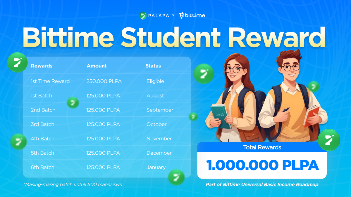 Gelaran kampanye Student Rewards ini rencananya dimulai pada Juli 2024, dan akan berlangsung selama 6 bulan. Nantinya, setiap bulan terdapat 250 token Palapa ($PLPA) yang akan dibagikan untuk masing-masing mahasiswa yang terpilih.