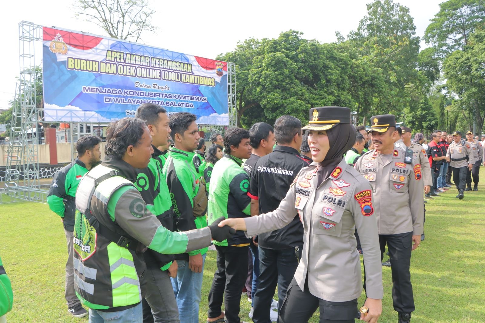 Buruh dan Ojol Bersatu Jaga Salatiga Damai: Kapolres Veronica Pimpin Apel Akbar Kebangsaan Kamtibmas