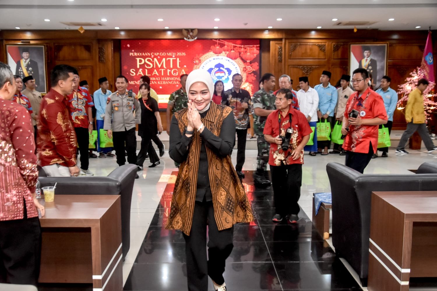 “Momentum ini mengajarkan nilai optimisme, persaudaraan, dan keharmonisan sosial. Nilai-nilai tersebut sangat penting untuk memperkuat kehidupan masyarakat yang rukun, saling menghormati, serta menjaga keberagaman yang menjadi kekuatan Kota Salatiga,” ujar Nina di hadapan para tamu.