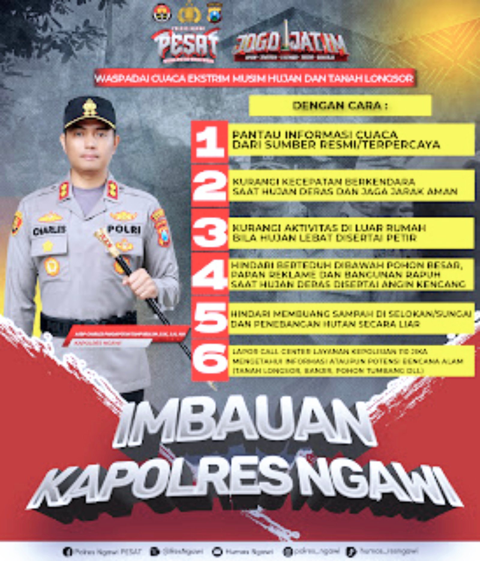 Cegah Bencana Sejak Dini, Kapolres Ngawi Keluarkan Imbauan Waspada Musim Penghujan