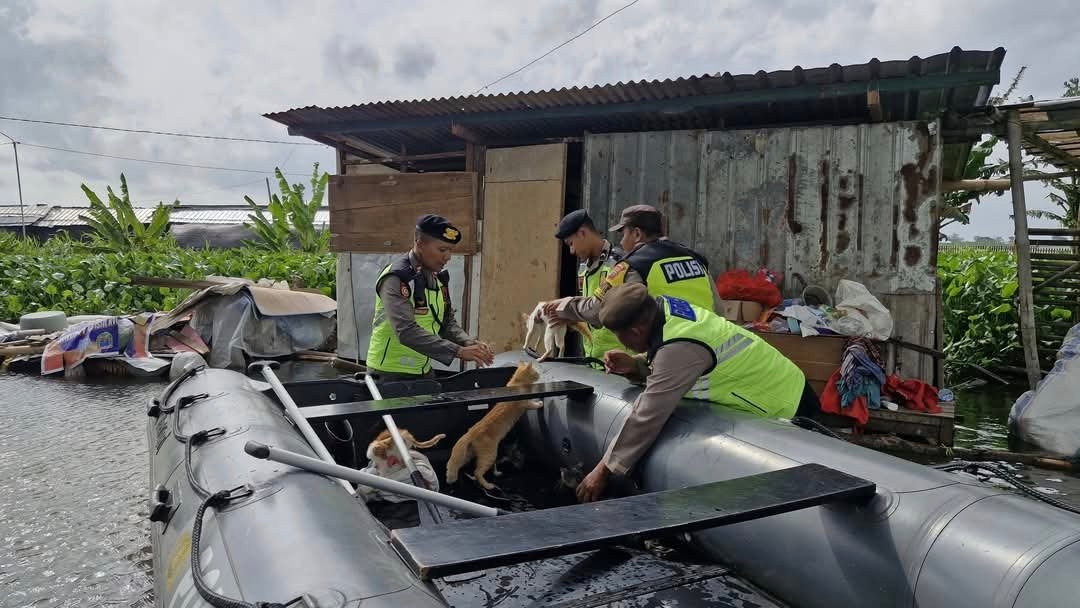Mendengar hal itu, Kapolres Kudus langsung mengambil tindakan cepat. Ia memerintahkan jajarannya menyiapkan perahu untuk mengevakuasi hewan peliharaan tersebut, mengingat wilayah Desa Payaman masih dikepung genangan air cukup dalam.