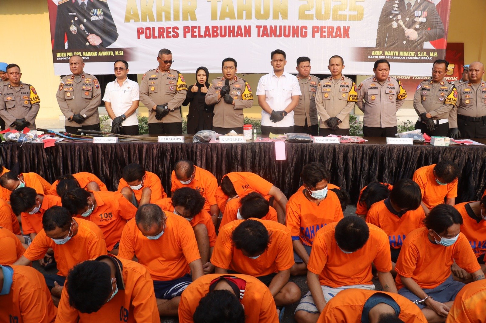 “Ini bukan sekadar angka. Penurunan 13 persen menunjukkan bahwa langkah pencegahan dan pengawasan di lapangan berjalan tepat sasaran,” tegas AKBP Wahyu saat memimpin rilis Anev di Mapolres Pelabuhan Tanjung Perak, Senin (29/12/2025).