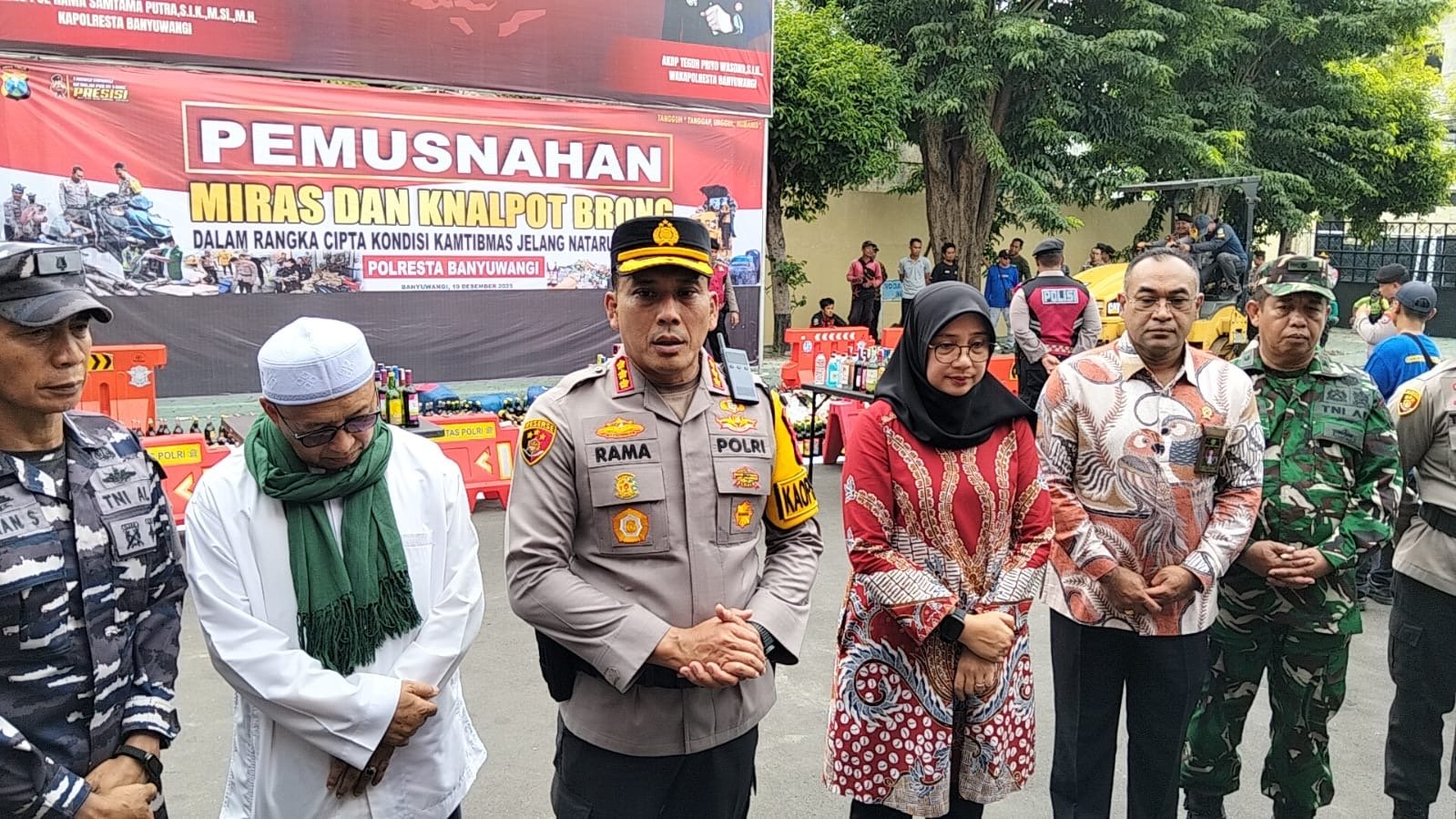 Melalui momentum tersebut, Forkopimda Banyuwangi juga mengajak seluruh elemen masyarakat untuk berperan aktif menjaga ketertiban, mematuhi peraturan, serta tidak terlibat dalam peredaran miras ilegal maupun penggunaan knalpot tidak standar.