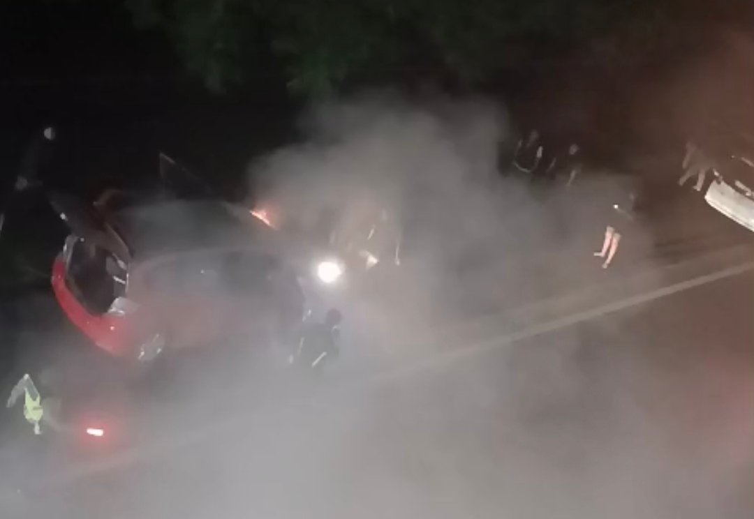 Kejadian bermula ketika sebuah kendaraan tiba-tiba mengeluarkan asap tebal yang disusul kobaran api dari bagian mesin. Dalam hitungan menit, api mulai membesar dan berpotensi menjalar lebih luas, membahayakan pengendara lain yang melintas di jalur tersebut.