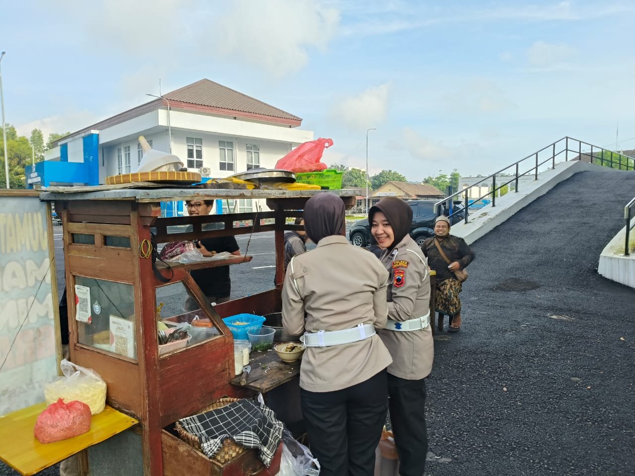 Salah satu momen yang menarik perhatian adalah kehadiran para Polwan Satlantas yang ikut terjun langsung membantu penjual soto. Bak “asisten tukang soto”, mereka menyajikan makanan sambil melempar senyum ramah, memadukan unsur pelayanan humanis dan kedekatan emosional yang jarang ditemui di kantor pelayanan administratif.