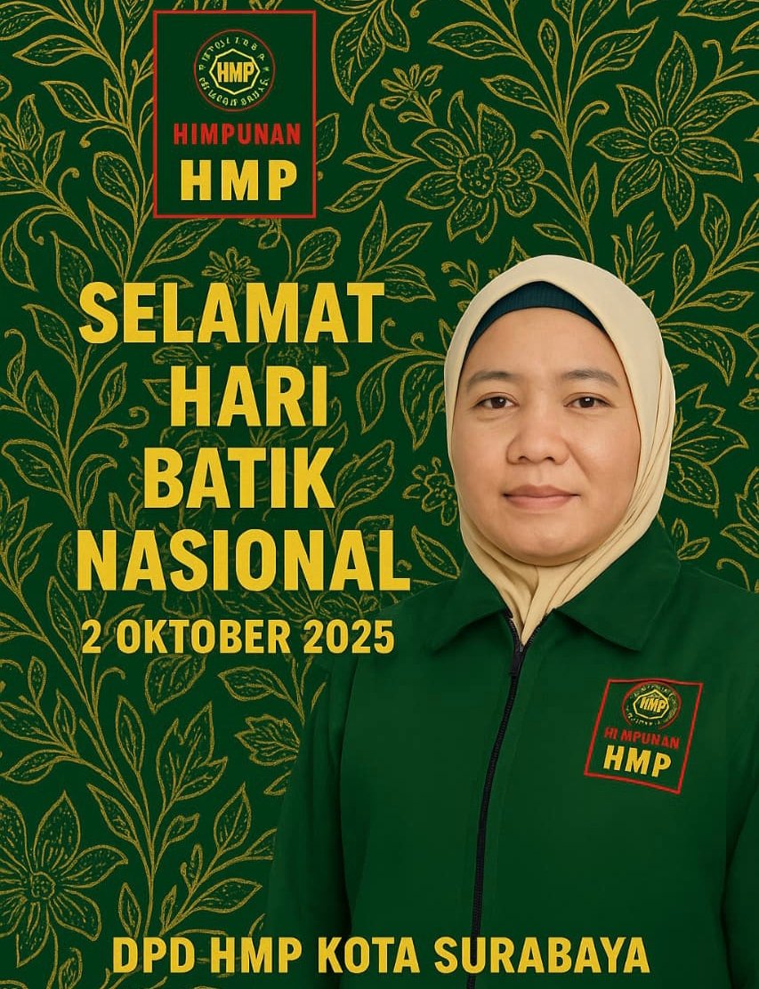 SURABAYA | SUARAGLOBAL.COM – Dalam rangka memperingati Hari Batik Nasional 2025 yang jatuh pada 2 Oktober, Dewan Pimpinan Daerah (DPD) Himpunan Harapan Mitra Pengusaha (HMP) Kota Surabaya menyampaikan ucapan selamat sekaligus ajakan untuk terus mencintai dan melestarikan batik sebagai warisan budaya bangsa.