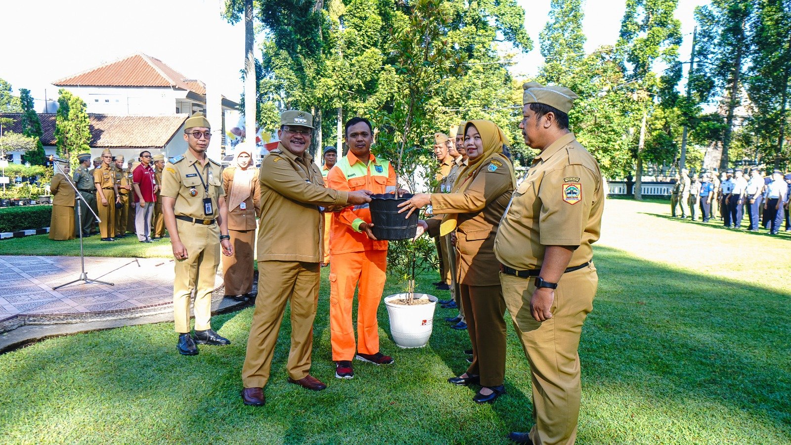 Dalam apel tersebut, Wali Kota Robby menyerahkan secara simbolis dua penghargaan bergengsi dari UI Green City Metric Tahun 2025.