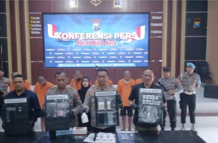 Berikut enam tersangka beserta barang bukti yang berhasil diamankan Satreskoba Polres Blitar Kota: