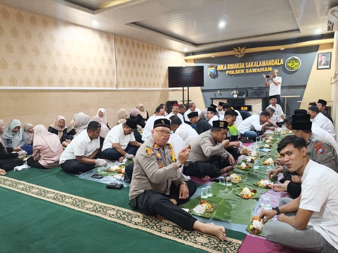 Selain menjadi ajang silaturahmi Ramadan, kegiatan tersebut juga dirangkai dengan prosesi lepas sambut jabatan Kanit Intelkam Polsek Sawahan.