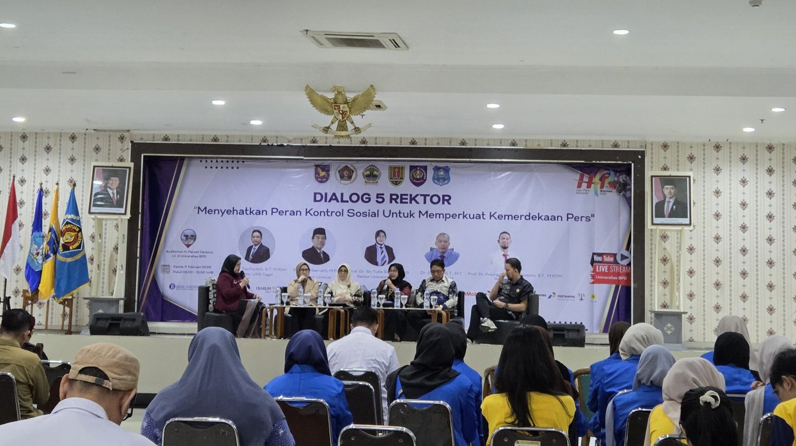 Pesan tersebut mengemuka dalam Dialog 5 Rektor yang digelar PWI Jawa Tengah sebagai rangkaian Hari Pers Nasional (HPN) Tingkat Jawa Tengah Tahun 2026, Kamis (5/2/2026), di Ruang H Panoet Harsono Lantai 4 Universitas BPD, Jalan Soekarno Hatta No. 88, Semarang.