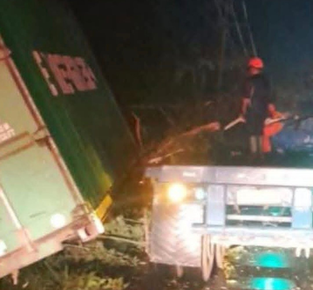 Benturan tersebut menyebabkan peti kemas terlepas dari bak truk, hingga terguling dan nyaris menutup sebagian badan jalan. Warga sekitar yang sedang melintas sempat dibuat kaget oleh suara keras dari arah kendaraan.