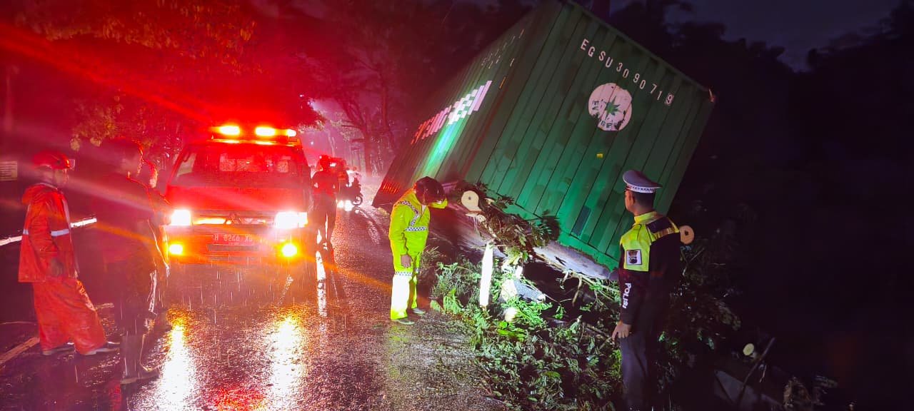 Kecelakaan Terjadi di JLS Salatiga, Sebuah Truk Senggol Pohon Hingga Kontainer Terlepas, Ini Jelasnya