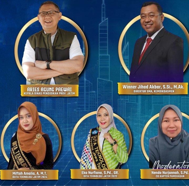 Webinar ini juga menghadirkan sejumlah narasumber inspiratif yang telah berkontribusi nyata dalam pengembangan inovasi pembelajaran digital. Mereka antara lain Winner Jihad Akbar (Direktur SMA, Kementerian Pendidikan Dasar dan Menengah RI), Miftah Amalia (Duta Teknologi Jawa Timur 2024), dan Eka Nurfiana (Duta Teknologi Jawa Timur 2022).