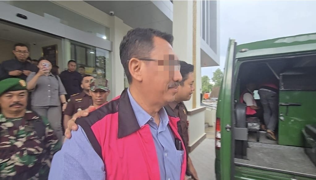 Pantauan Suaraglobal.com di lokasi, suasana mendadak hening saat keempat tersangka digiring menuju mobil tahanan. Tangan mereka diborgol. Rompi oranye kejaksaan melekat kuat.