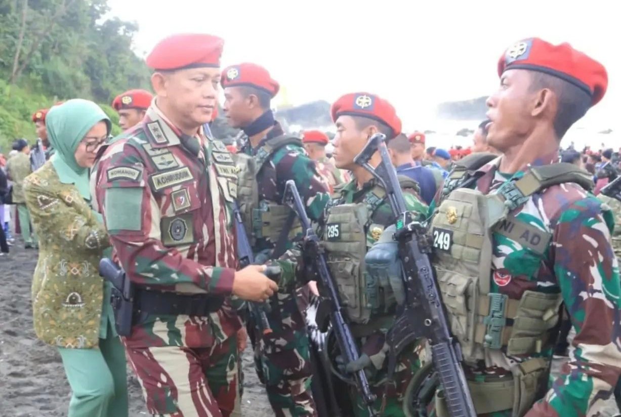 CILACAP | SUARAGLOBAL.COM – Pantai Permisan Nusakambangan kembali menjadi saksi lahirnya para prajurit tangguh Korps Baret Merah. Pangdam IV/Diponegoro Mayjen TNI Achiruddin, S.E., M.Han. menghadiri Upacara Penutupan Pendidikan dan Penyematan Brevet Komando Angkatan-111 Tahun Ajaran 2025 pada Kamis (30/10/2025).