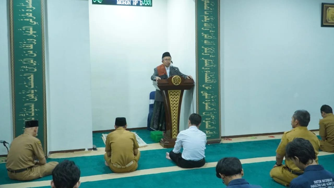 Kegiatan yang dilaksanakan usai Salat Zuhur tersebut menjadi salah satu agenda rutin selama bulan suci Ramadan. Para pegawai tampak khusyuk mengikuti tausiyah yang disampaikan oleh KH. Muh. Syakir Ridho, yang mengangkat tema tentang makna Al-Qur’an di bulan Ramadan.