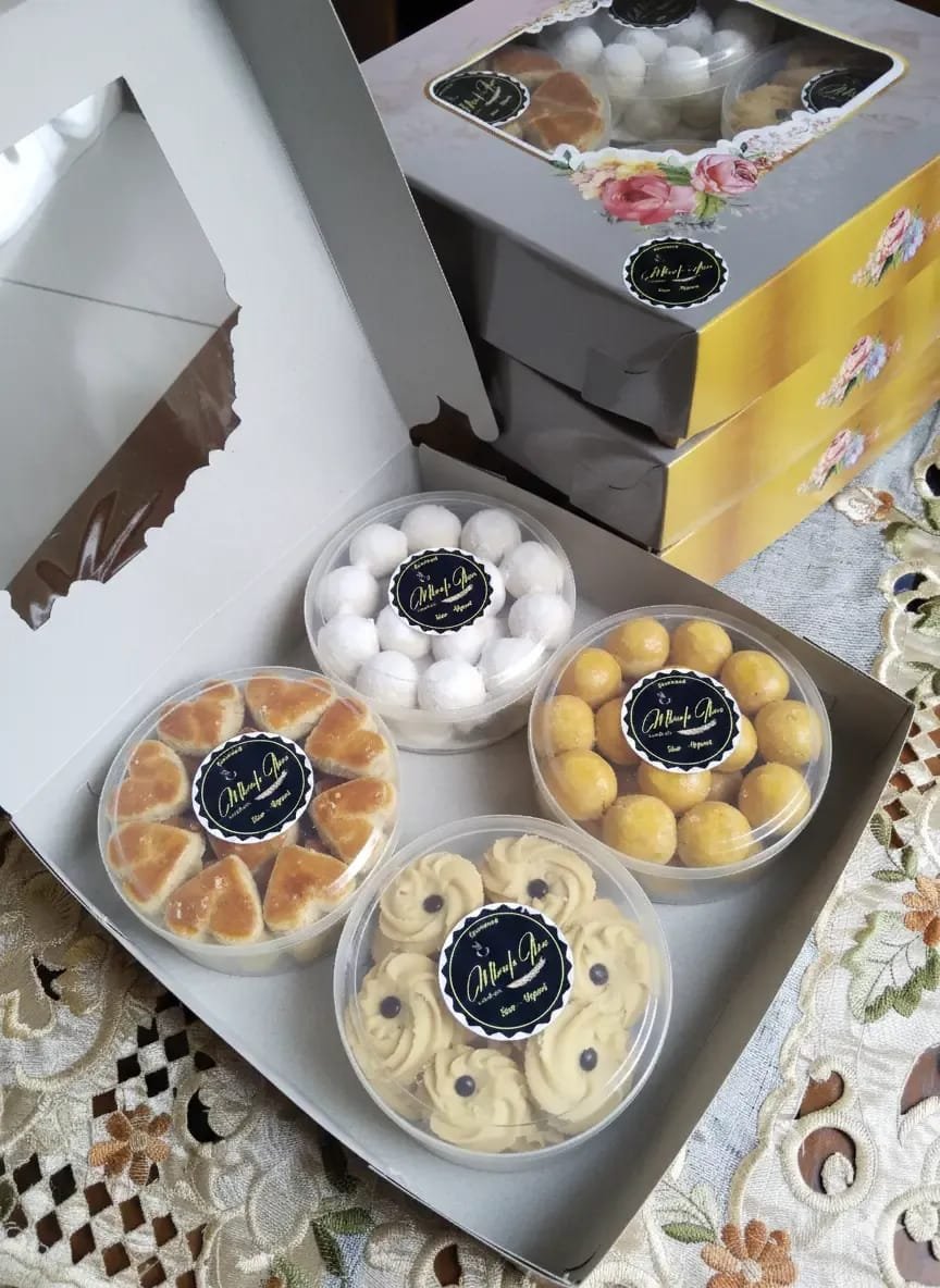 Aroma mentega dan gula yang karamelnya pas membuat siapa pun yang mencicipi sulit berhenti di satu keping saja. Setiap adonan diracik dengan takaran yang presisi, dipanggang hingga matang sempurna berwarna keemasan, lalu disusun rapi dalam toples bening siap kirim.