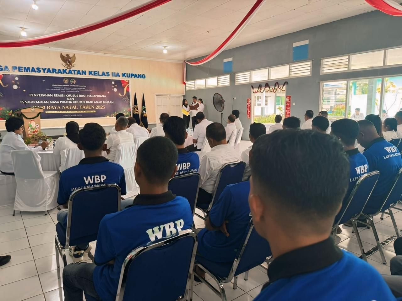 Penyerahan remisi dilaksanakan secara khidmat di Aula Lapas Kelas IIA Kupang, Kamis (25/12/2025). Kegiatan tersebut dihadiri oleh Direktur Kepatuhan Internal Direktorat Jenderal Pemasyarakatan, Lilik Sujandi, Kepala Kanwil Ditjenpas NTT, Ketut Akbar Herry Achjar, para Kepala UPT Pemasyarakatan se-Kota Kupang, jajaran pejabat Kanwil Ditjenpas NTT, serta perwakilan Warga Binaan dan Anak Binaan.