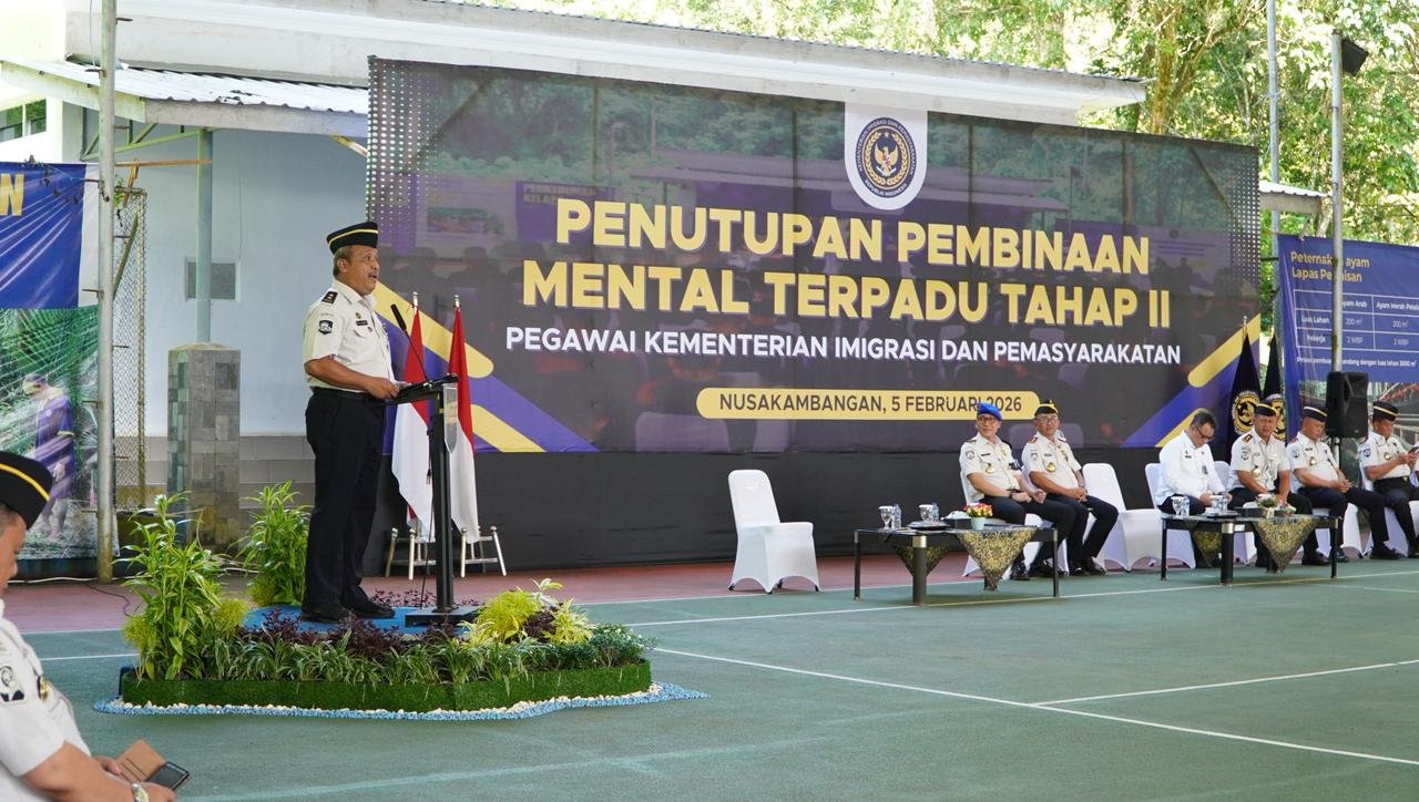 CILACAP | SUARAGLOBAL.COM – Suasana khidmat bercampur haru menyelimuti Lapangan Tenis Lapas Batu, Pulau Nusakambangan, Cilacap, Kamis (5/2/2026). Kementerian Imigrasi dan Pemasyarakatan secara resmi menutup Pembinaan Mental Tahap II bagi pegawai, sebuah program strategis yang dirancang khusus untuk membentuk aparatur negara yang berkarakter kuat, berintegritas tinggi, dan siap melayani masyarakat secara profesional.