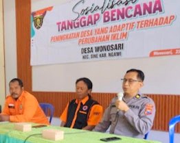 Desa Wonosari yang berada di lereng Gunung Lawu diketahui memiliki tingkat kerawanan cukup tinggi, mulai dari potensi tanah longsor, angin kencang, hingga perubahan cuaca ekstrem. Melihat kondisi tersebut, Polsek Sine bersama seluruh elemen terkait memandang pentingnya meningkatkan pemahaman mitigasi bencana bagi warga.