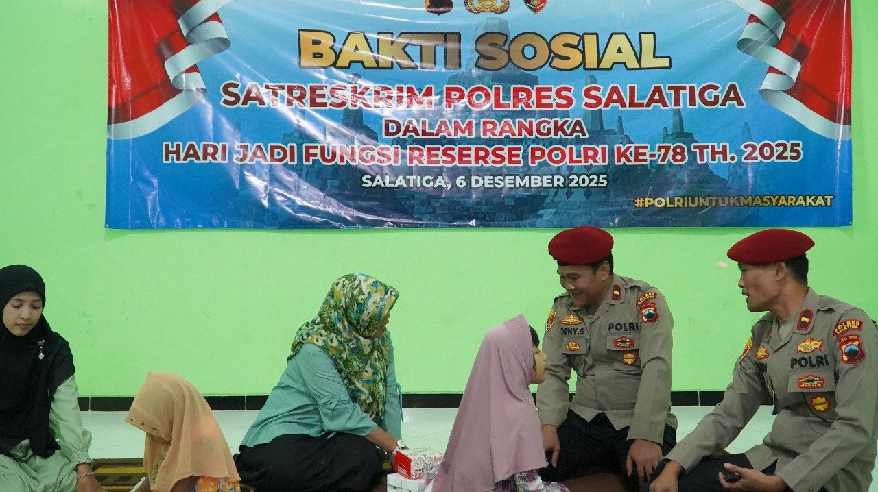 SALATIGA | SUARAGLOBAL.COM — Memperingati Hari Jadi Reserse Polri ke-78, Satuan Reserse Kriminal (Satreskrim) Polres Salatiga menggelar kegiatan bakti sosial di Panti Asuhan Masithoh, Sidorejo Kidul, Tingkir, Kota Salatiga, pada Minggu (6/12/2025). Aksi sosial ini menjadi bukti nyata komitmen Polri dalam menebar kepedulian dan memperkuat hubungan dengan masyarakat.