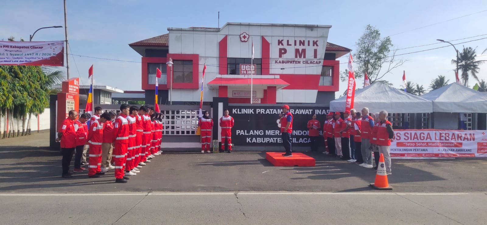Pembukaan dilakukan oleh Ketua PMI Kabupaten Cilacap, Drs. Farid Ma’rug, S.T., M.M., diawali laporan dari Kepala Markas Drs. Kadat Solih, M.Si., sebagai penanggungjawab operasional. Posko ini beroperasi selama 7 hari, mulai Rabu (18/3) hingga Selasa (24/3) 2026, dengan melibatkan 49 personel.Personel terdiri dari pengurus sebagai perwira piket, staf markas, UDD, dan klinik sebagai team leader sekaligus driver, tenaga medis/perawat dari Klinik Pratama Rawat Inap PMI, serta relawan KSR Unit Markas, KSR Unit Perti, TSR, dan SIBAT sebagai first aider di lapangan.
