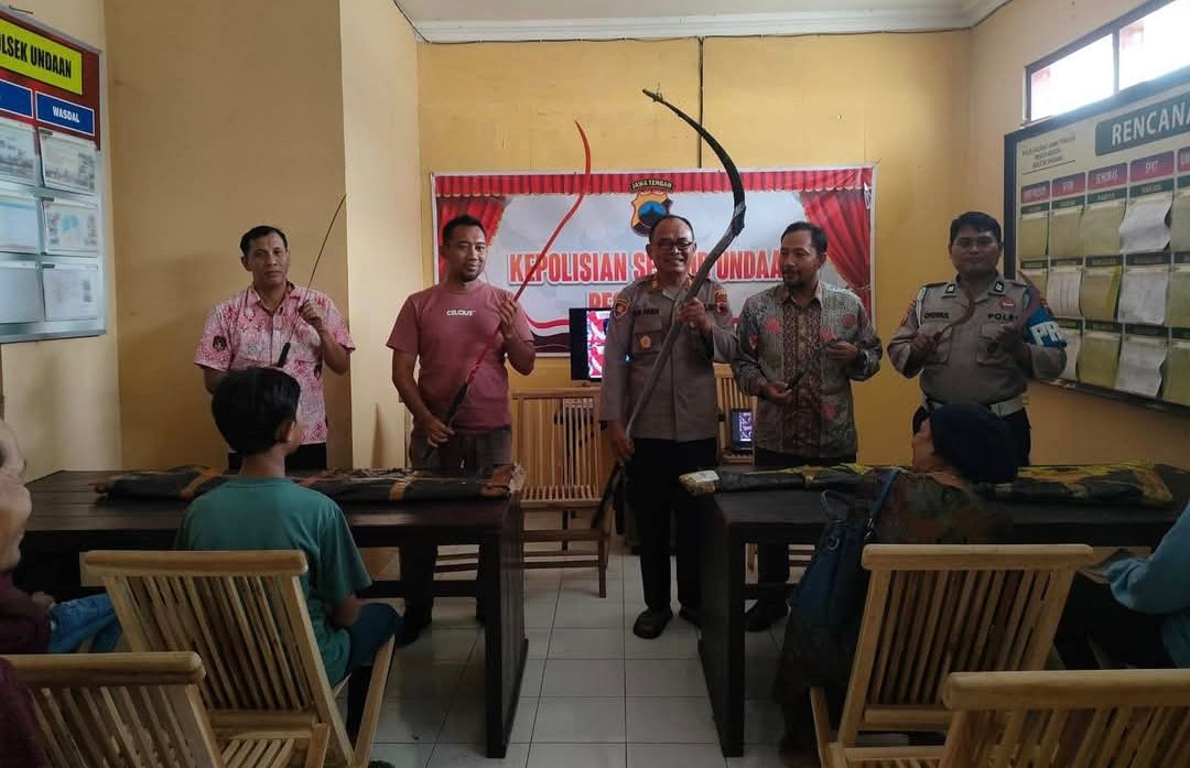 KUDUS | SUARAGLOBAL.COM — Polsek Undaan, Polres Kudus mengamankan sejumlah senjata tajam (sajam) berupa celurit dan parang panjang yang dipesan secara online oleh warga di Kecamatan Undaan. Dari hasil penelusuran, tiga orang diketahui menjadi pemesan, dua di antaranya masih berstatus anak-anak.
