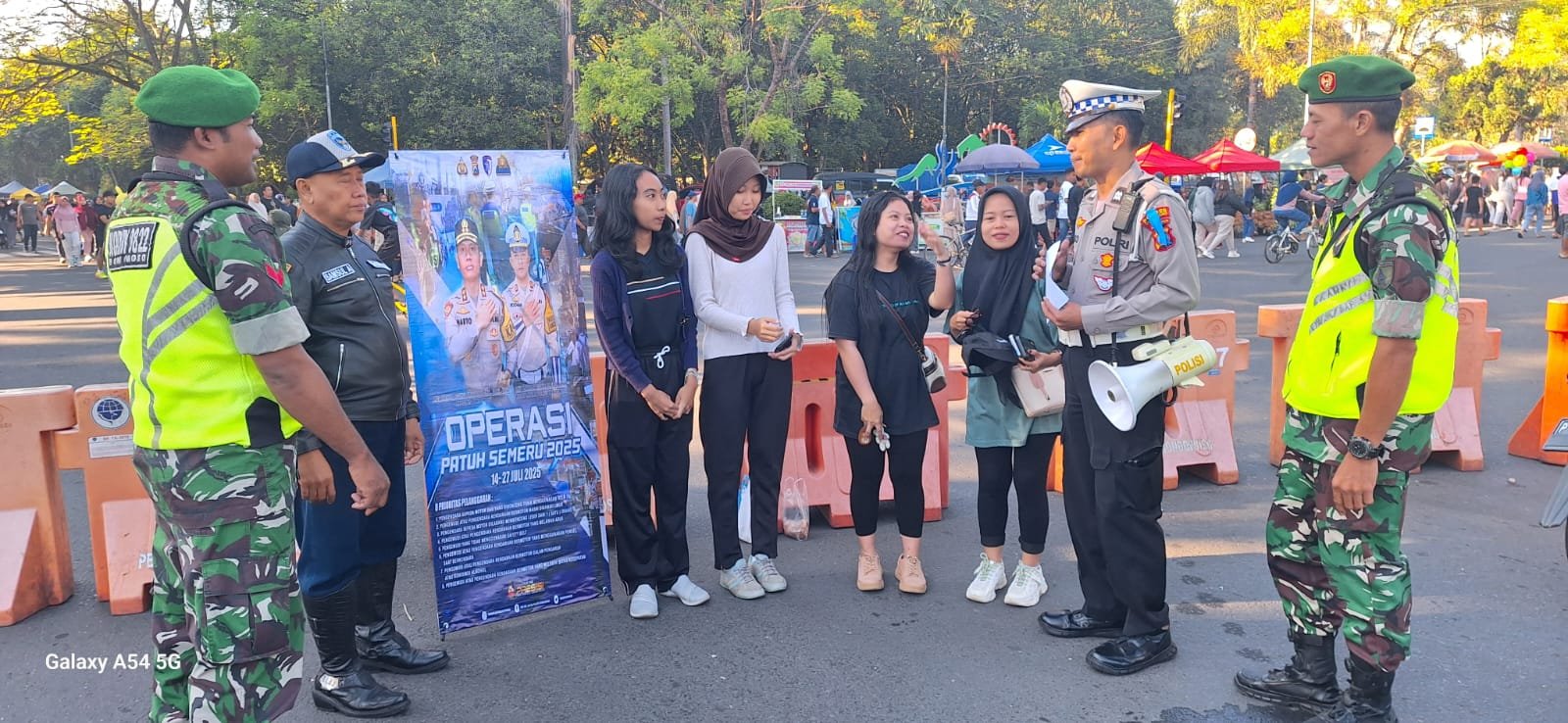 Dalam suasana santai khas CFD, para personel Satlantas aktif menyapa, berdialog, dan memberikan informasi langsung kepada warga yang hadir.