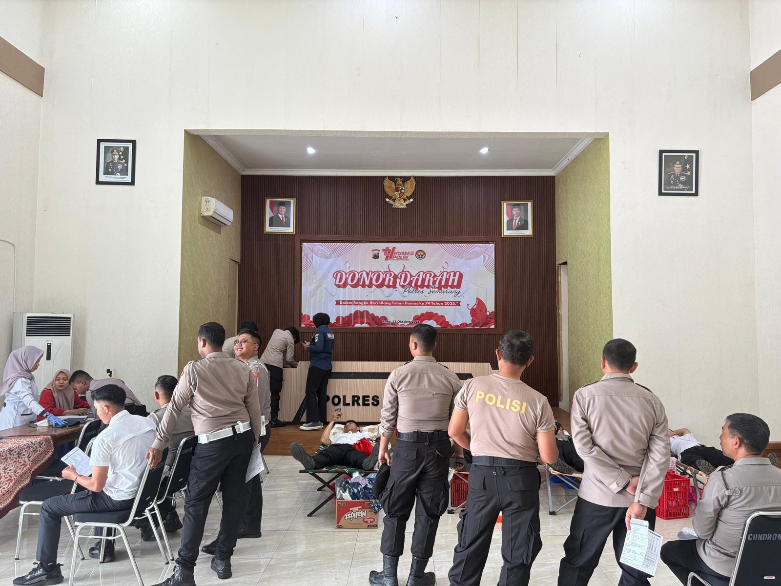 KAB SEMARANG | SUARAGLOBAL.COM – Dalam semangat memperingati Hari Ulang Tahun (HUT) Humas Polri ke-74, Polres Semarang menggelar kegiatan sosial donor darah yang berlangsung pada Selasa (22/10/2025) pukul 09.00 WIB di Aula Condrowulan Polres Semarang. Aksi kemanusiaan ini dilaksanakan melalui kolaborasi antara Seksi Humas (Si Humas), Seksi Kedokteran dan Kesehatan (Si Dokkes) Polres Semarang, serta Palang Merah Indonesia (PMI) Kabupaten Semarang.