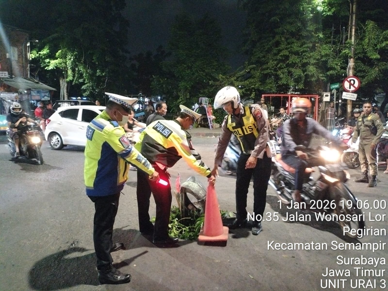 Di tempat yang sama, Panit Lantas Polsek Semampir, Aipda Evan Santoso, menambahkan bahwa pengaturan lalu lintas dilakukan secara maksimal hingga arus kendaraan benar-benar kembali lancar.