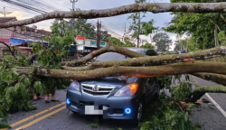 Angin Kencang Robohkan Pohon Pete 15 Meter, Timpa Sebuah Mobil dan Akibatkan Jalan Macet