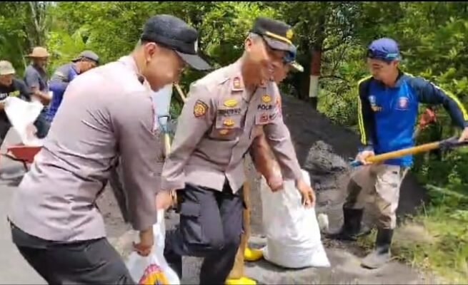 Polda Jatim Kerahkan Personel Gabungan Perkuat Tanggul Curah Kobokan Demi Cegah Bahaya Lahar Semeru