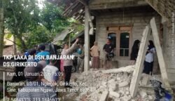 Kecelakaan Maut di KM 43 Jalur Ngawi–Sine, Mobil Pick Up Hantam Dua Motor dan Rumah Warga, Dua Orang Tewas