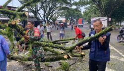 Hujan Deras Disertai Angin Kencang, TNI Bersama Petugas Gabungan Sigap Atasi Pohon Tumbang di Sidorejo