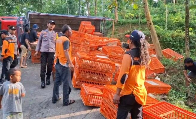 Truk Ayam Terguling di Tanjakan Leter S Gunung Sarehan Sine: Sopir Selamat, Akibatkan Jalan Macet Total